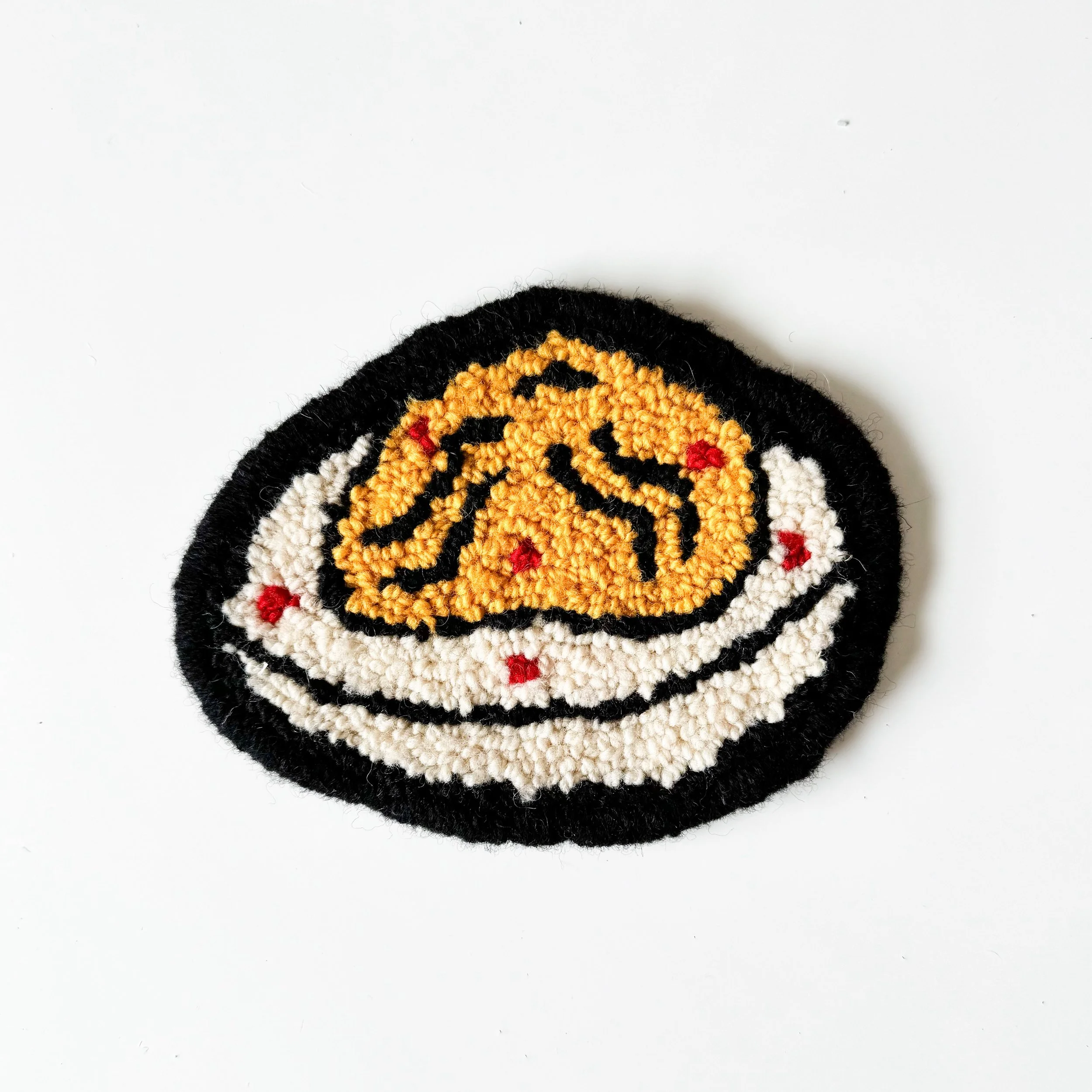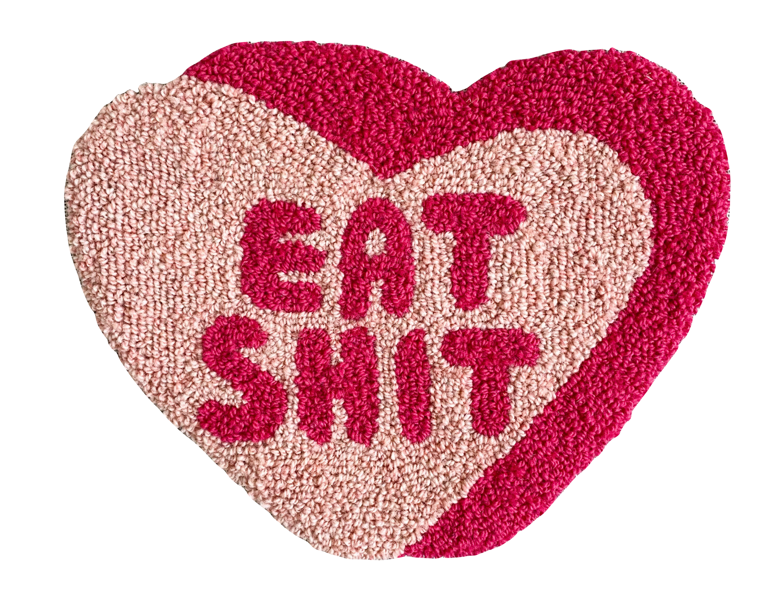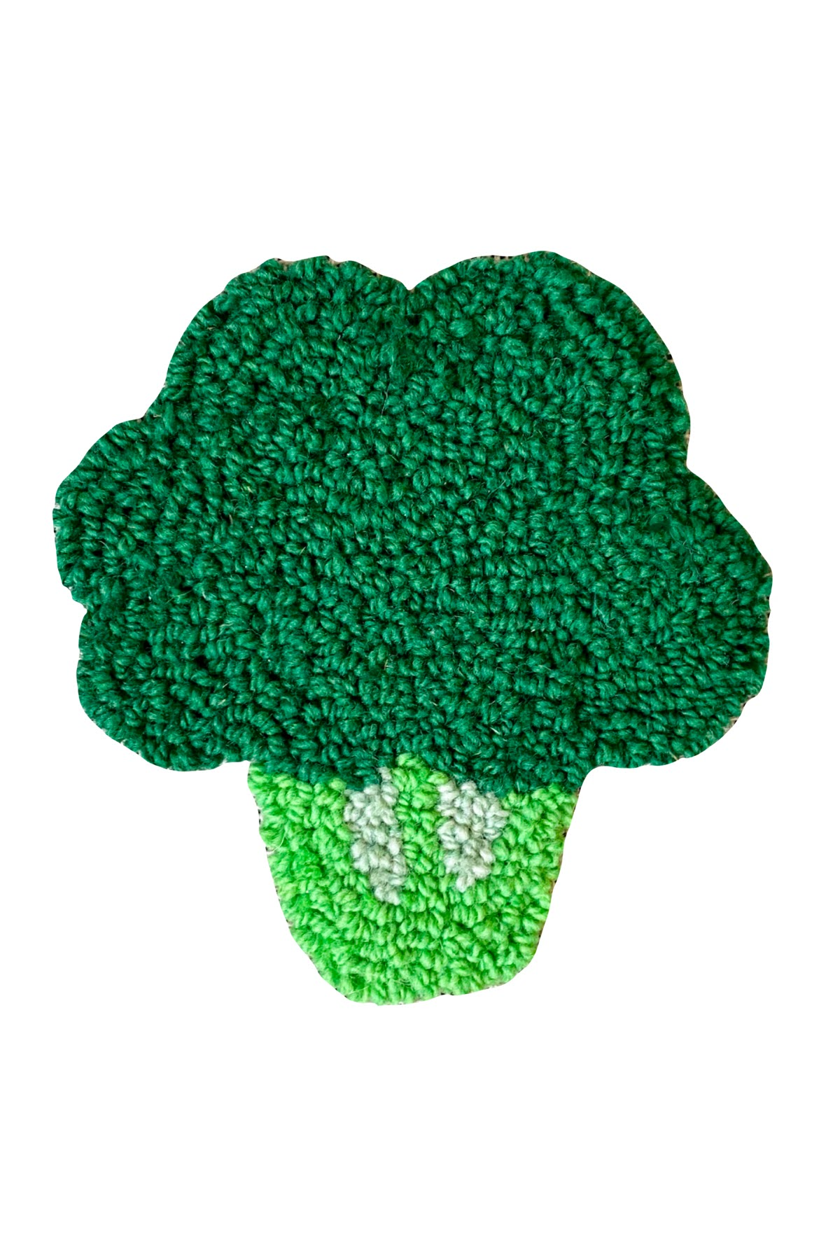 Rug Hooking Kits include, pouch packaging with labels, a rug hook, linen with pattern, wool yarn, a pattern page, and rug hooking instructions.